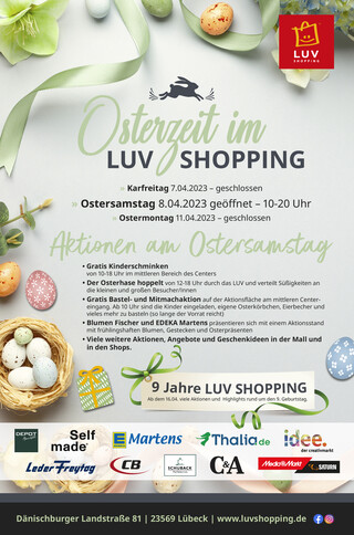 Am Ostersamstag, den 08.04.2023, bietet das LUV diverse Aktionen, Angebote und Geschenkideen in den Shops.