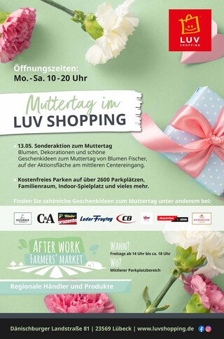 Anlässlich des diesjährigen Muttertages finden Sie am Samstag, den 13.05. auf der Aktionsfläche am mittleren Centereingang Blumen, Dekorationen und schöne Geschenkideen von Blumen Fischer.
